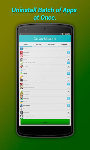 It helps to kills unwanted background apps and releases memory, as RAM memory Booster. Quick view of Apps in list format with usage information, Uninstall apps by selecting all or manually one by one like a complete App Manager or Uninstall master.