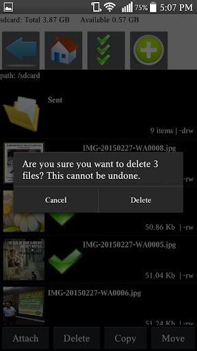 4) Select files to COPY, DELETE, ATTACH or MOVE.