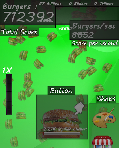 - Tap on a giant button in the middle of the screen to increase your Score.