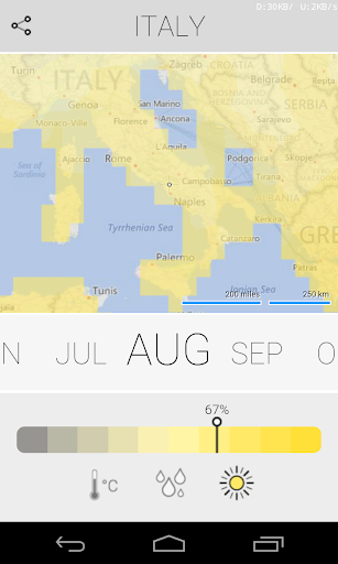 Climatology gives you climate information for anywhere on Earth: temperature, rain and sunniness. Whether finding where are the warm, dry places to go on holiday in December, or avoiding rain for your wedding, to finding out what the climate is like in Kazakhstan in April, Climatology allows you to discover the information you want.