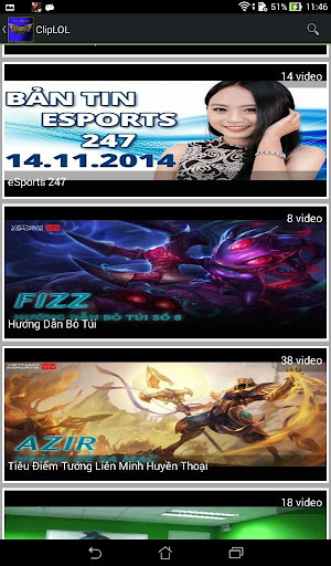 Clip tổng hợp các clip game Liên minh huyền thoại LoL mới nhất, những trận đánh hay vòng chung kết thế giới 2014, Việt Nam Championship Serie A mùa xuân 2015, Góc nhìn bình luận, Hướng dẫn bỏ túi những thủ thuật trong game...
