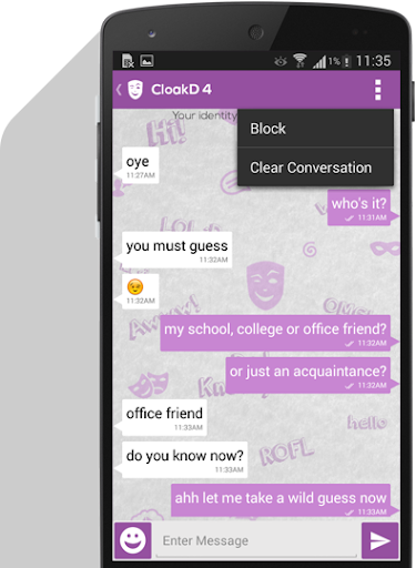 Initiate anonymous conversations with people you know or be on the receiving end of chat requests that can unravel what your friends think about you. You can also block users who've been misusing the power of anonymity and bothering you.