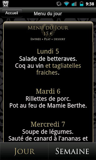 De plus vous pourrez aussi consulter le menu du jour ainsi que celui de la semaine.