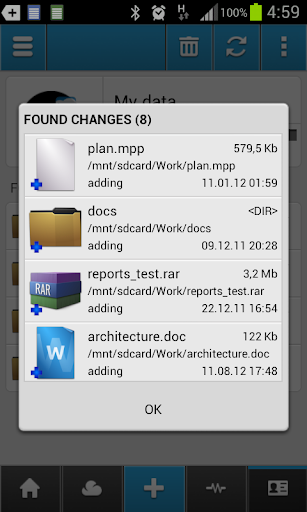 • Synchronize any folders on your device with any folders of storages and vice versa – simply connect two folders and forget about any additional actions. If you don't want to forget – your right, use manual start of process of synchronization:)