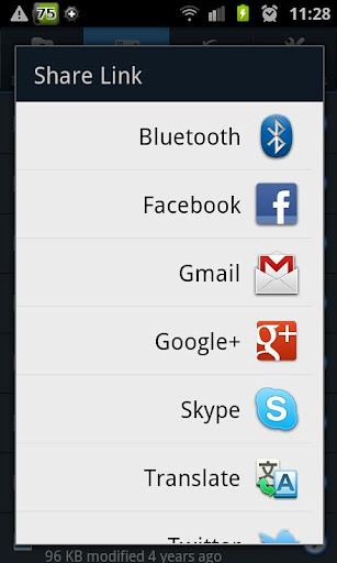 Files/Folders sharing, interface with: Facebook, Twitter, Google+, Picasa, YouTube, Mail, SMS, etc.
