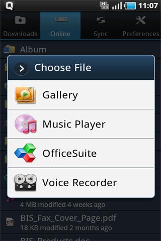 The Sync option enables automatic backup of videos, pictures, music, calendar or contacts. Choose “when” (daily, weekly, or monthly) and “what” and it will be done automatically. Once you choose a file, you can send it to your colleagues directly from the online storage platform or upload it directly to your social networking account.