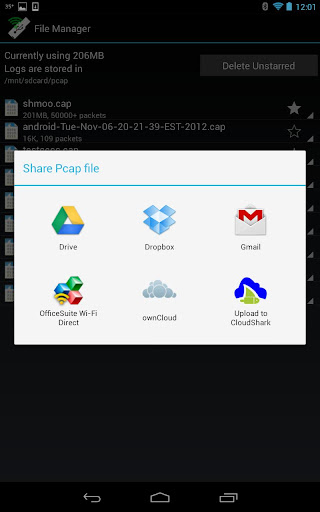 Android CloudShark Uploader provides an easy mechanism for uploading PCAP files to either the CloudShark public website or a private CloudShark appliance.