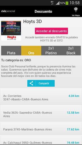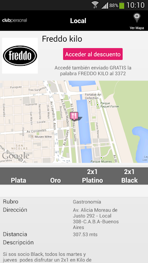 * Planear tus salidas con descuento Club Personal: Conocé los descuentos Club organizados por rubro o por cercanía, o buscarlos por palabra clave. Además, podes ubicar los descuentos que tenes alrededor o en la ubicación que deseas estar.
