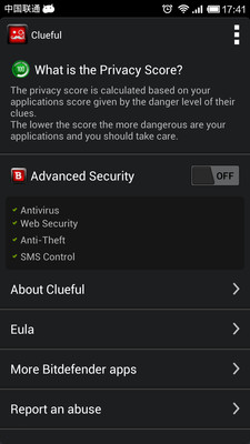 Clueful大致可以识别以下隐私和安全问题,并依照严重程度给手机做出一个评分: