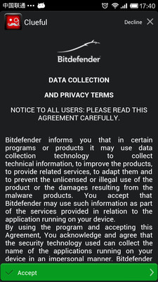 Clueful是Bitdefender推出的一款隐私安全应用,可以方便让你了解你的手机中有哪些可能泄漏隐私的应用。