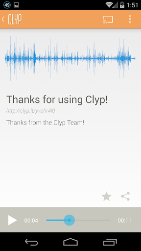Clyp is a simple way to record, discover, and share the audio in your life. Whether that's music, a new sound effect, an interview, or the strange noise your car makes, you can easily share it with those around you. No account required.