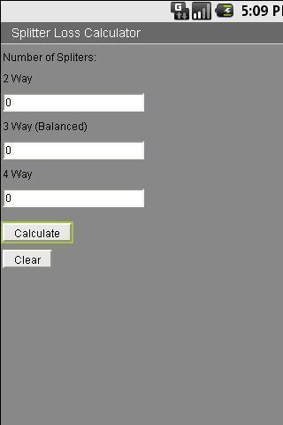 This is a simple calculator for Coax loss through spliters. The loss is measured in dbmv. A more robust version to be released at a later date.