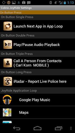 Easier than digging through a nest of touch screen menus! Push the JoyRide button (integrated into the car charger) to trigger JoyRide button actions.