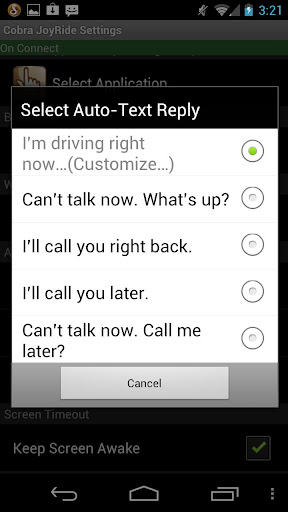 * Send automatic replies to text messages or phone calls (e.g. "I'm driving right now...")