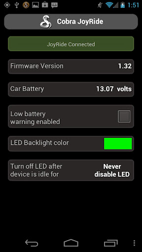 Note: Certain functionalities of this app are only available when linked to an Android-compatible Cobra JoyRide car charger. To purchase a Cobra JoyRide car charger, visit: