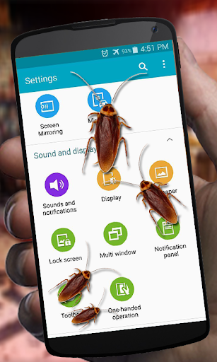 Our Cockroach Prank is displayed on top of the screen, over every opened app, so you can’t not notice it.