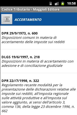 Il Codice Tributario consultabile ovunque ti trovi, in modo rapido ed efficiente, grazie all'interfaccia chiara e alle utilità a disposizione, e senza connessione ad internet! Un assistente leggero, pratico e completo, un mondo di norme nel palmo di una mano.