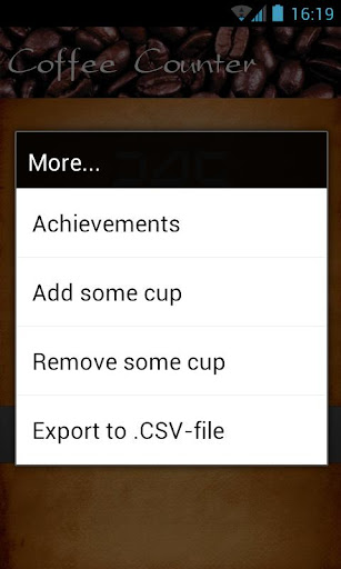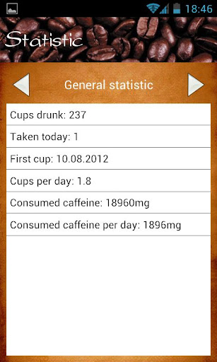 How many cups of coffee do you drink? Coffee Counter will store data on consumption of coffee.