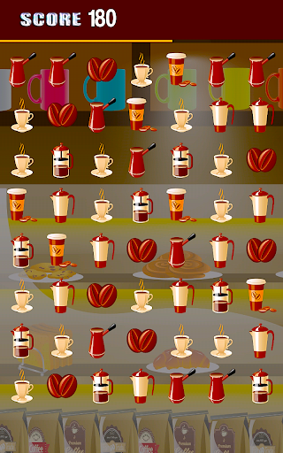 The object in this fun puzzle game is to organize the objects in the café being sure you match 3 or more in a row for every move you make. Find similar objects as you explore the set looking for shapes, patterns and colors with a wide spectrum of coffee related items including coffee makers, coffee cups, coffee press, coffee grains, coffee jars and others.