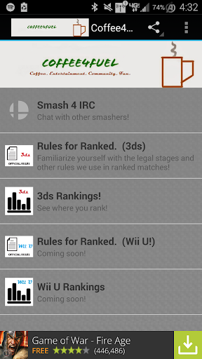 Check where you rank on our leader boards, chat with other smashers in the IRC chat, all from the convenience of your phone!