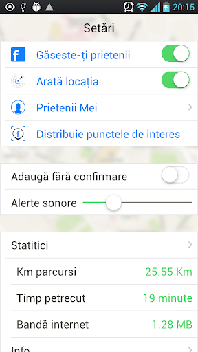 Mai mult, utilizatorii pot alege care sunt punctele de interes afișate pe hartă prin configurarea hărții de pe ecranul principal. În același mod, șoferii pot alege, din ecranul de setări, ce notificări să primească.