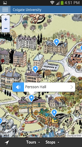 Thinking of attending Colgate University? Prospective students and families can navigate the campus and learn about our unique programs and culture through self-guided tours. Whether at home or on campus our interactive student guide will accompany you as you explore our university's offerings through the use of the GPS-enabled campus map, student videos and photos.