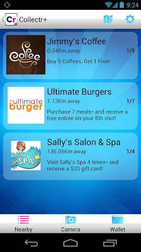 Collectr+ allows you to keep track of all your loyalty programs in one application. Simply scan a QR code at any of our many merchant locations to collect stamps and redeem awards. Never have the hastle of carrying or losing paper cards again! Download Collectr+ and start collecting today!