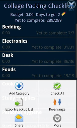 Leaving home for college the first time is a stressful job. Why add to it by being disorganized? College Packing app helps you make sure that the big day is filled with nothing but happiness.