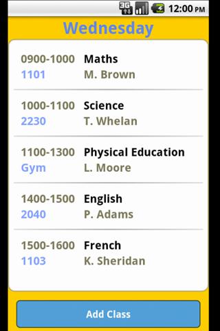 * Keep track of your daily classes with class room, lecturer and subject information.