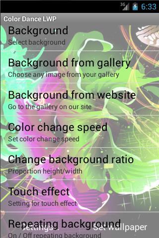 This is a live wallpaper with the effect of slow changing colors (HUE shift). In settings you can choose one of eleven backgrounds. Wallpaper made with OpenGL ES 2.0 engine and has smooth parallax effect, even for Samsung, Sony and HTC devices. Also you can use any your picture from device gallery. The app has a built-in link to our website where you can find over colorful 100 pictures.