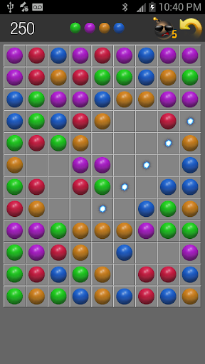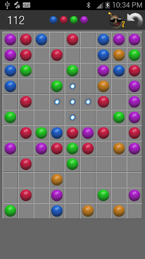 The game starts with a 9x12 board with 4 balls chosen out of 4 different colors.