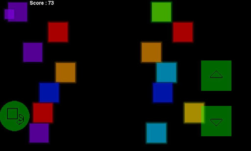 사각형 플레이어를 사각형 버튼을 통해 위아래로 이동시키고, 원 버튼을 통해 플레이어의 색을 무지개 색 순서대로 변경할수 있습니다.(보라→빨강)