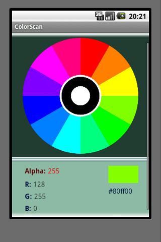 ColorScan is extremely simple to operate, you only must capture an image with the phone camera or load it from the internal memory of the device. Then, when the image is placed on the main screen, push on the region where you want to know the color and ColorScan will report you the colour code immediately.