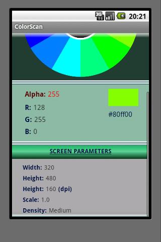 Moreover, you can also capture an image with the camera and the image can be analized by ColorScan.