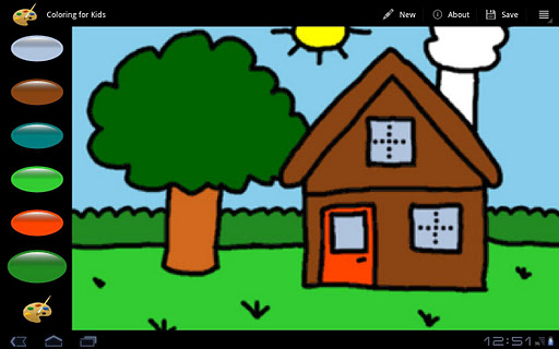 Coloring for kids lets your child simply paint with its fingers. He just have to choose a template, pickup colors on the palette and draw with a little tap. The drawings can be saved on the device and shared by mail or using social networks.