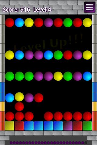 Make rows of balls with the same color. Balls will fall from the top of the screen. You can touch the ones you don't need in order to make them disappear. Only let the ones you need reach the floor. If you make a row of balls with wrong colors, they will become bricks and the game area will be reduced. The game is over if there isn't enough space for a row to drop. A brand new game based on tetris style games.