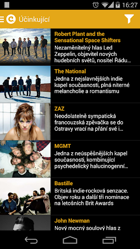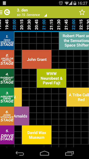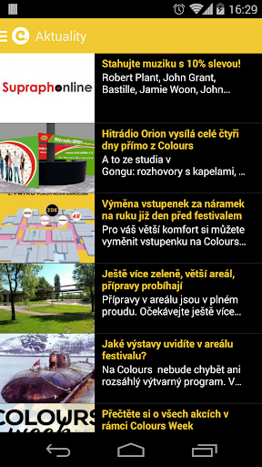 Mobilní aplikace pro hudební festival Colours of Ostrava. Aktuality, Line up, Učinkující, Nyní hraje, Oblíbené, Mapa, Informace, Užitečné odkazy, Notifikace oblíbených kapel. Při prvním spuštění aplikace je nutné vyčkat než se načtou všechny data ze serveru. (http://www.colours.cz/)