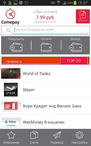 Если у Вас еще нет Comepay-Кошелька, его можно бесплатно зарегистрировать непосредственно из приложения.