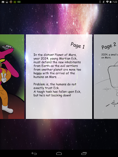 Comic Book Eck is an original story aimed and written for kids. It's based in the year 2024, when humans from Earth arrive on Mars. The problem is, Mars already has some new inhabitants, The Ovalis. Ovalis do not want humans on Mars and will do everything in their power to get rid of them. Led by Stark Turris, The Ovalis are set to make sure the humans leave Mars for good.