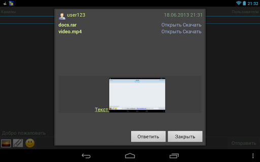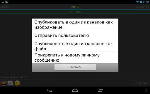 Поддерживаются смайлы, настройка профиля, работа со списками каналов и