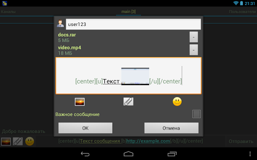 пользователей. Поддерживается вложение файлов в сообщения.