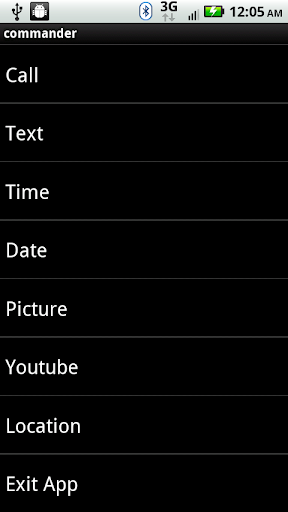 You can dial a number, send a text, have the current time read to you, have the current date read to you, take a picture with the camera, load the mobile version of youtube, find your location(phone has to be gps capable), and exit the app. Also there is a built in "knock-knock" joke listener, just say the command knock knock to get started.