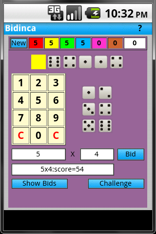 Bluffing dice game for 2 to 6 players - great for a small device that can be handed round to the players. Like the commercial game Perudo, this is derived from Liar's Dice.