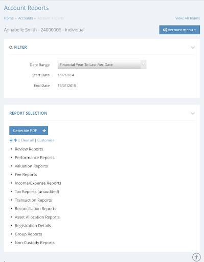 • Keep track of client account details on the go, including the ability to download reports and graphs.