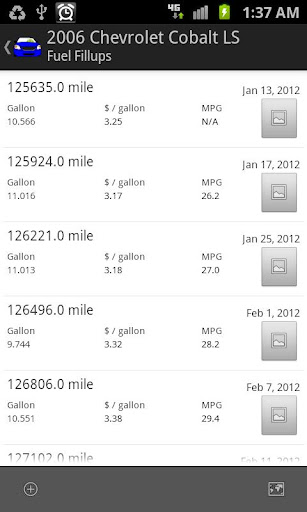 - View stats on your fuel economy (e.g., miles/gallon) and fuel prices (e.g., $/gallon)