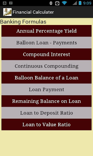 This app helps the user to calculate all finance related calculations, such as :General Finance Formulas, Annuity - Future Value, Annuity - Present Value, Avg Collection Period,Annuity - PV Factor, Annuity Due - Present Value, Annuity Due - Future Value, Doubling Time, Doubling Time - Cont. Compounding, Doubling Time - Simple Interest, Future Value, FV - Continuous Compounding, Future Value Factor, Growing Annuity - Future Value, Growing Annuity - Present Value, Growing Perpetuity - Present Value, Perpetuity, Present Value, Present Value Factor, Rule of 72, Weighted Average, Banking Formulas, Annual Percentage Yield, Balloon Loan - Payments, Compound Interest, Continuous Compounding