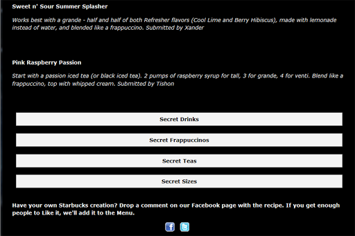 Delicious Starbucks drinks that you never knew existed! This collection of drinks, frappuccinos, and teas have been created by Starbucks Baristas and connoisseurs from all over the world! Not all Baristas will be familiar with these drinks, so be sure to include the recipe when ordering.