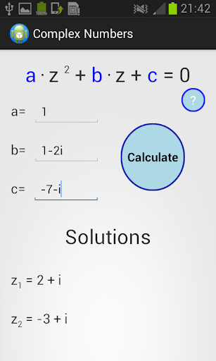 This app is simple and will get you through the frustration of solving long and difficult complex quadratic equations.