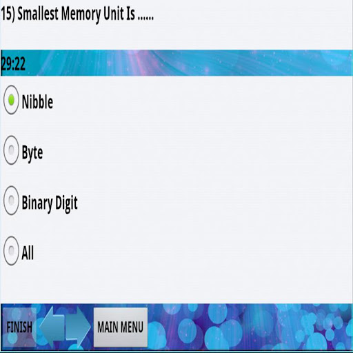 3. One ‘Main Menu’ button is given in this page. When you press on it you will back to the first page of the application. Initially Finish button is disabled, when you achieve last question than it will enable. If you want to go to previous question then press on previous button you can go one by one. After thirty minute previous and next button will disable only finish button will be enabled.