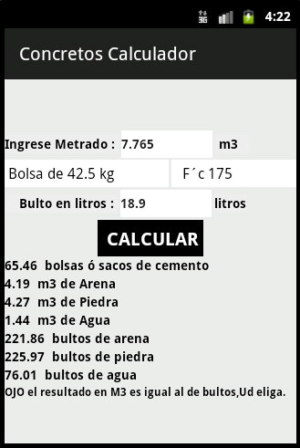Solo tendra que ingresar su medida en m3, y escoger la dosificación